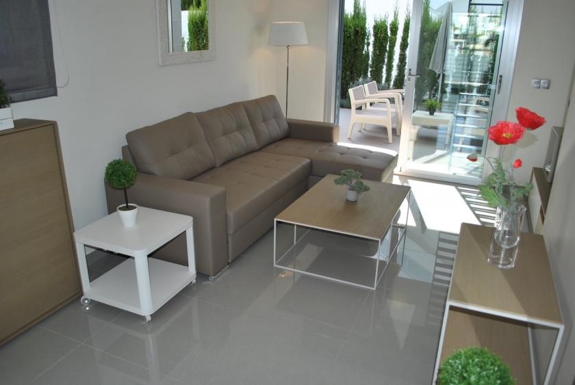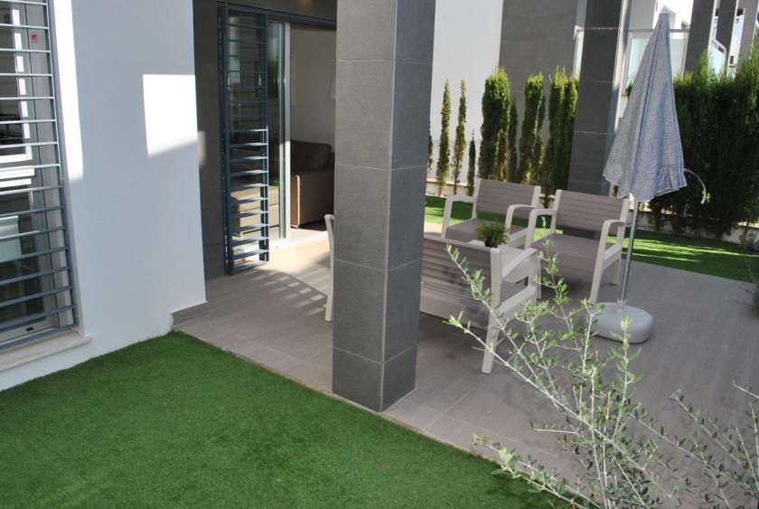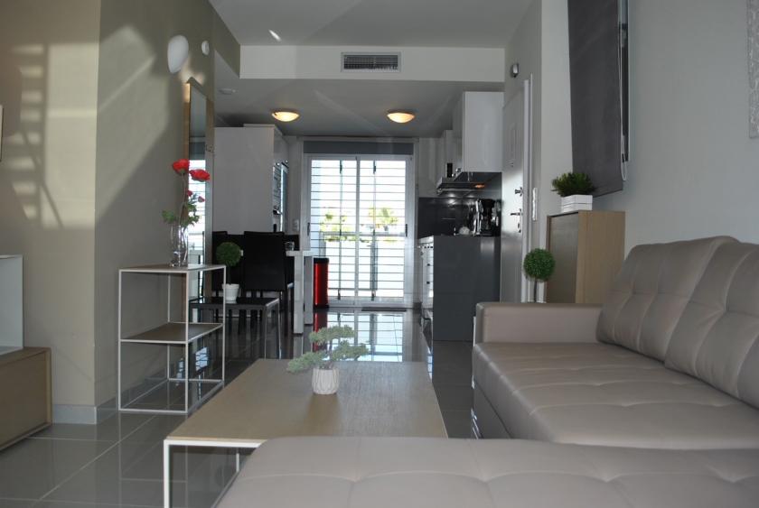 Denne moderne og stilfulde lejlighed på stueetagen ligger i Park Amay Quinto, mindre end 700 meter fra Punta Marina shoppingcenter og 1,3 kilometer fra Punta Prima-stranden. Den fælles park har en smukt anlagt have, flere swimmingpools og en legeplads for børn.